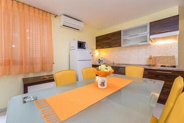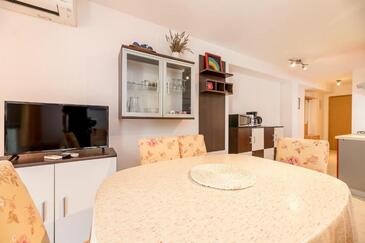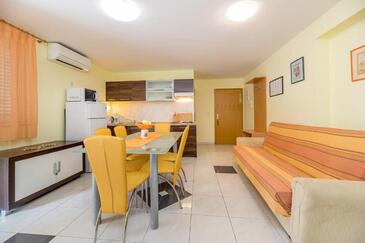 Ferienwohnung bietet Platz für 5 Gäste. Die Betten sind in Schlafzimmern, die es 2 gibt, und in Wohnzimmer, innerhalb einer Gesamtfläche von 42m2, angeordnet. Die Gäste haben eine eigene Terrasse zur Verfügung, auf der sie in warmen Sommernächten genießen können. Für vollen Genuss und Entspannung gibt es einen privaten Grill für Gäste dieser Unterkunft. In der Unterkunftseinheit besteht die Möglichkeit des Mitbringens von Haustieren gegen Aufpreis.