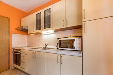 Ferienwohnung bietet Platz für 5 Gäste. Die Betten sind in Schlafzimmern, die es 2 gibt, und in Wohnzimmer, innerhalb einer Gesamtfläche von 56m2, angeordnet. Die Gäste haben eine eigene Terrasse zur Verfügung, auf der sie in warmen Sommernächten genießen können. Für vollen Genuss und Entspannung gibt es einen privaten Grill für Gäste dieser Unterkunft.