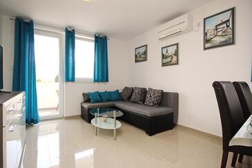 Ferienwohnung bietet Platz für 5 Gäste. Die Betten sind in Schlafzimmern, die es 2 gibt, und in Wohnzimmer, innerhalb einer Gesamtfläche von 50m2, angeordnet. Die Gäste haben einen eigenen Balkon zur Verfügung, auf der sie in warmen Sommernächten genießen können.