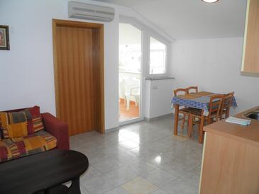 Ferienwohnung bietet Platz für 5 Gäste. Die Betten sind in Schlafzimmern, die es 2 gibt, und in Wohnzimmer, innerhalb einer Gesamtfläche von 50m2, angeordnet. Die Gäste haben einen eigenen Balkon zur Verfügung, auf der sie in warmen Sommernächten genießen können. In der Unterkunftseinheit besteht die Möglichkeit des Mitbringens von Haustieren gegen Aufpreis.