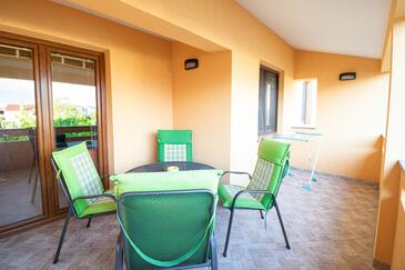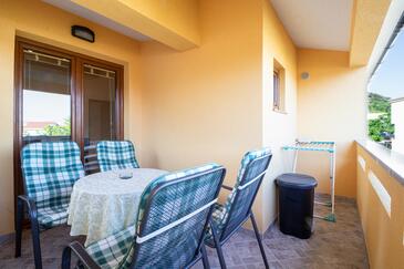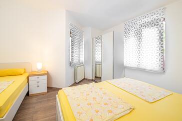 Ferienwohnung bietet Platz für 4 Gäste. Die Betten sind in Schlafzimmern, die es 1 gibt, und in Wohnzimmer, innerhalb einer Gesamtfläche von 30m2, angeordnet. Die Gäste haben einen eigenen Balkon zur Verfügung, auf der sie in warmen Sommernächten genießen können. Das Apartment bietet Meerblick. Es ist erlaubt, Speisen auf dem Gemeinschafts-Grill vorzubereiten.