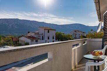Ferienwohnung bietet Platz für 6 Gäste. Die Betten sind in Schlafzimmern, die es 3 gibt, innerhalb einer Gesamtfläche von 62m2, angeordnet. Die Gäste haben einen eigenen Balkon zur Verfügung, auf der sie in warmen Sommernächten genießen können.
