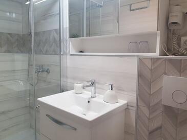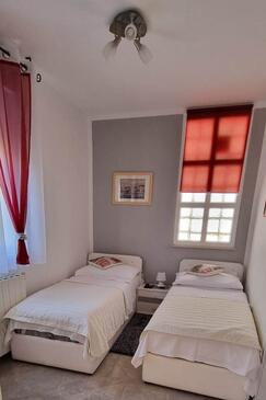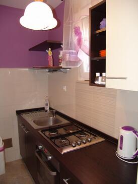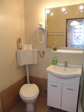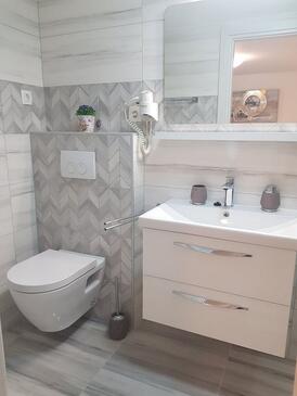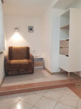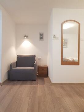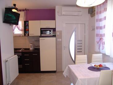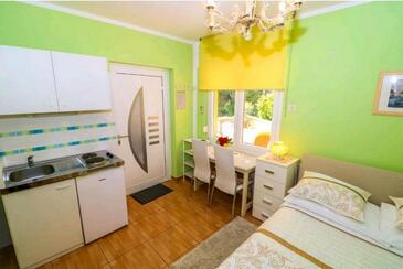 Ferienwohnung bietet Platz für 5 Gäste. Die Betten sind in Schlafzimmern, die es 2 gibt, innerhalb einer Gesamtfläche von 47m2, angeordnet. Die Gäste haben eine eigene Terrasse zur Verfügung, auf der sie in warmen Sommernächten genießen können. Es ist erlaubt, Speisen auf dem Gemeinschafts-Grill vorzubereiten.