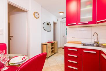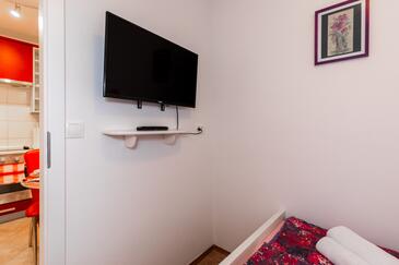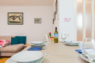 Ferienwohnung bietet Platz für 4 Gäste. Die Betten sind in Schlafzimmern, die es 1 gibt, und in Wohnzimmer, innerhalb einer Gesamtfläche von 43m2, angeordnet. Die Gäste haben eine eigene Terrasse zur Verfügung, auf der sie in warmen Sommernächten genießen können. In der Unterkunftseinheit besteht die Möglichkeit des Mitbringens von Haustieren gegen Aufpreis.