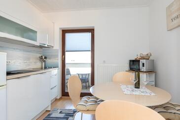 Ferienwohnung bietet Platz für 3 Gäste. Die Betten sind in Schlafzimmern, die es 1 gibt, und in Wohnzimmer, innerhalb einer Gesamtfläche von 43m2, angeordnet. Die Gäste haben eine eigene Terrasse zur Verfügung, auf der sie in warmen Sommernächten genießen können. Das Apartment bietet Meerblick. Es ist erlaubt, Speisen auf dem Gemeinschafts-Grill vorzubereiten. In der Unterkunftseinheit besteht die Möglichkeit des Mitbringens von Haustieren gegen Aufpreis.