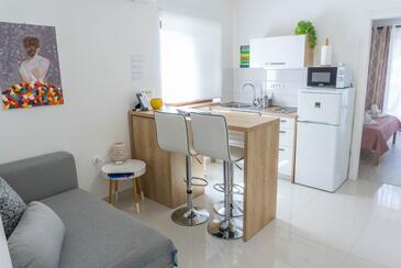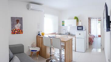 Ferienwohnung bietet Platz für 2 Gäste. Die Betten sind in Schlafzimmern, die es 1 gibt, innerhalb einer Gesamtfläche von 28m2, angeordnet. Die Gäste haben eine eigene Terrasse zur Verfügung, auf der sie in warmen Sommernächten genießen können. Es ist erlaubt, Speisen auf dem Gemeinschafts-Grill vorzubereiten. In der gebuchten Unterkunftseinheit zahlt man am Ort ein Depositum ( der Preis ist an der Internetseite angeführt ).