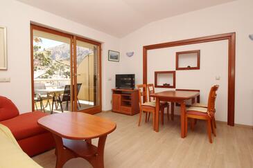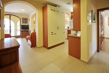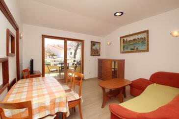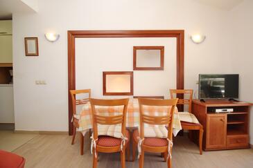 Ferienwohnung bietet Platz für 6 Gäste. Die Betten sind in Schlafzimmern, die es 3 gibt, innerhalb einer Gesamtfläche von 101m2, angeordnet. Die Gäste haben eine eigene Terrasse zur Verfügung, auf der sie in warmen Sommernächten genießen können.