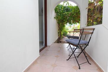 Ferienwohnung bietet Platz für 3 Gäste. Die Betten sind in Schlafzimmern, die es 1 gibt, innerhalb einer Gesamtfläche von 50m2, angeordnet. Die Gäste haben eine eigene Terrasse zur Verfügung, auf der sie in warmen Sommernächten genießen können. Es ist erlaubt, Speisen auf dem Gemeinschafts-Grill vorzubereiten.
