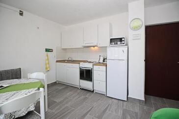 Ferienwohnung bietet Platz für 6 Gäste. Die Betten sind in Schlafzimmern, die es 2 gibt, innerhalb einer Gesamtfläche von 40m2, angeordnet. Die Gäste haben eine eigene Terrasse zur Verfügung, auf der sie in warmen Sommernächten genießen können. In der Unterkunftseinheit besteht die Möglichkeit des Mitbringens von Haustieren gegen Aufpreis.