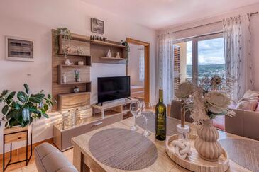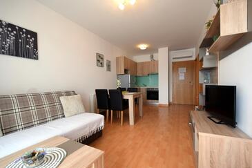 Ferienwohnung bietet Platz für 4 Gäste. Die Betten sind in Schlafzimmern, die es 2 gibt, innerhalb einer Gesamtfläche von 54m2, angeordnet. Die Gäste haben einen eigenen Balkon zur Verfügung, auf der sie in warmen Sommernächten genießen können. Das Apartment bietet Meerblick. Es ist erlaubt, Speisen auf dem Gemeinschafts-Grill vorzubereiten. In der Unterkunftseinheit besteht die Möglichkeit des Mitbringens von Haustieren gegen Aufpreis.