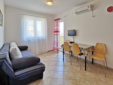 Ferienwohnung bietet Platz für 4 Gäste. Die Betten sind in Schlafzimmern, die es 1 gibt, und in Wohnzimmer, innerhalb einer Gesamtfläche von 35m2, angeordnet. Die Gäste haben eine eigene Terrasse zur Verfügung, auf der sie in warmen Sommernächten genießen können. Es ist erlaubt, Speisen auf dem Gemeinschafts-Grill vorzubereiten. In der Unterkunftseinheit besteht die Möglichkeit des Mitbringens von Haustieren gegen Aufpreis.