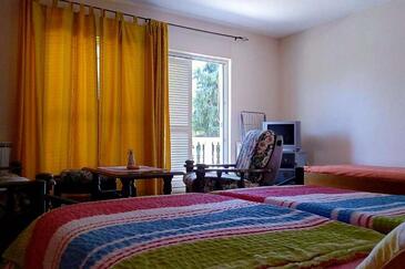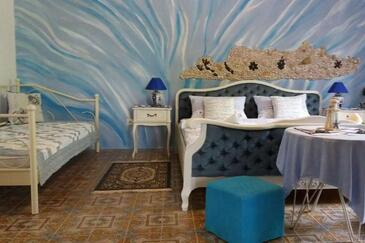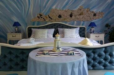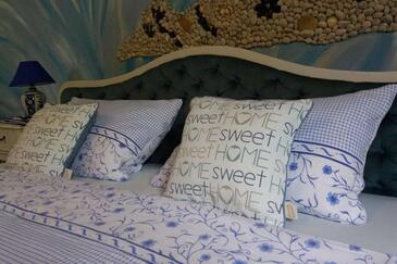 Ferienwohnung bietet Platz für 6 Gäste. Die Betten sind in Schlafzimmern, die es 2 gibt, innerhalb einer Gesamtfläche von 80m2, angeordnet. Die Gäste haben eine eigene Terrasse zur Verfügung, auf der sie in warmen Sommernächten genießen können. Es ist erlaubt, Speisen auf dem Gemeinschafts-Grill vorzubereiten. In der Unterkunftseinheit besteht die Möglichkeit des Mitbringens von Haustieren gegen Aufpreis.