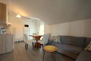 Ferienwohnung bietet Platz für 4 Gäste. Die Betten sind in Schlafzimmern, die es 2 gibt, und in Wohnzimmer, innerhalb einer Gesamtfläche von 55m2, angeordnet. Die Gäste haben einen eigenen Balkon zur Verfügung, auf der sie in warmen Sommernächten genießen können. Es ist erlaubt, Speisen auf dem Gemeinschafts-Grill vorzubereiten.