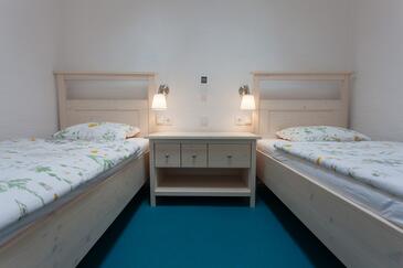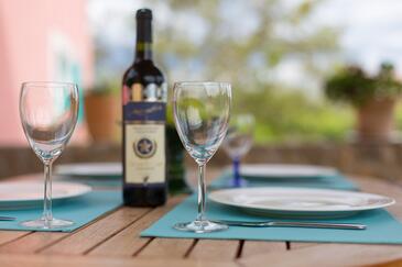 Haus bietet Platz für 6 Gäste. Die Betten sind in Schlafzimmern, die es 2 gibt, und in Wohnzimmer, innerhalb einer Gesamtfläche von 78m2, angeordnet. Die Gäste haben eine eigene Terrasse zur Verfügung, auf der sie in warmen Sommernächten genießen können. Es ist erlaubt, Speisen auf dem Gemeinschafts-Grill vorzubereiten.