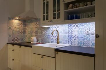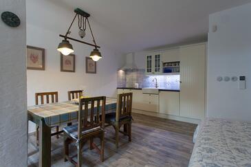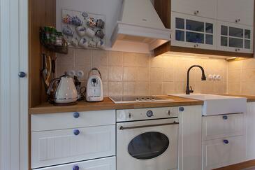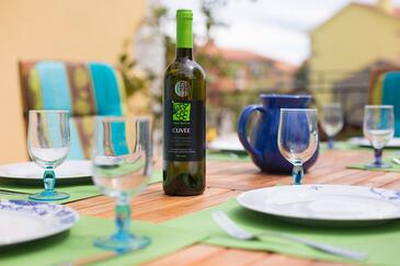 Ferienwohnung bietet Platz für 5 Gäste. Die Betten sind in Schlafzimmern, die es 2 gibt, und in Wohnzimmer, innerhalb einer Gesamtfläche von 70m2, angeordnet. Die Gäste haben eine eigene Terrasse zur Verfügung, auf der sie in warmen Sommernächten genießen können. Es ist erlaubt, Speisen auf dem Gemeinschafts-Grill vorzubereiten.