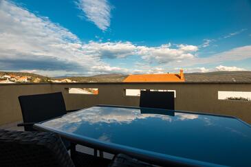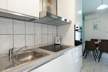 Ferienwohnung bietet Platz für 4 Gäste. Die Betten sind in Schlafzimmern, die es 2 gibt, innerhalb einer Gesamtfläche von 42m2, angeordnet. Die Gäste haben eine eigene Terrasse zur Verfügung, auf der sie in warmen Sommernächten genießen können. Das Apartment bietet Meerblick.