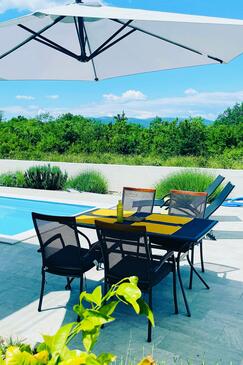 Ferienwohnung bietet Platz für 6 Gäste. Die Betten sind in Schlafzimmern, die es 2 gibt, und in Wohnzimmer, innerhalb einer Gesamtfläche von 49m2, angeordnet. Die Gäste haben eine eigene Terrasse zur Verfügung, auf der sie in warmen Sommernächten genießen können. Während ihres Aufenthalts können Gäste das gemeinsam zur Nutzung stehende Schwimmbad benutzen. In der Unterkunftseinheit besteht die Möglichkeit des Mitbringens von Haustieren gegen Aufpreis.