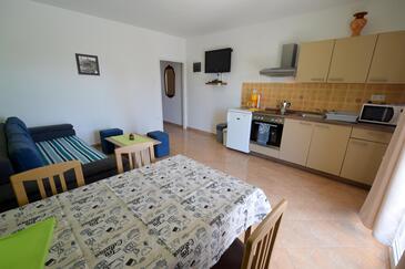 Ferienwohnung bietet Platz für 3 Gäste. Die Betten sind in Schlafzimmern, die es 1 gibt, innerhalb einer Gesamtfläche von 42m2, angeordnet. Die Gäste haben eine eigene Terrasse zur Verfügung, auf der sie in warmen Sommernächten genießen können. Es ist erlaubt, Speisen auf dem Gemeinschafts-Grill vorzubereiten.