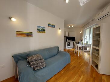Ferienwohnung bietet Platz für 4 Gäste. Die Betten sind in Schlafzimmern, die es 2 gibt, innerhalb einer Gesamtfläche von 49m2, angeordnet. Die Gäste haben einen eigenen Balkon zur Verfügung, auf der sie in warmen Sommernächten genießen können.