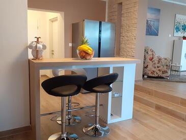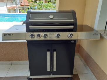 Ferienwohnung bietet Platz für 6 Gäste. Die Betten sind in Schlafzimmern, die es 3 gibt, und in Wohnzimmer, innerhalb einer Gesamtfläche von 94m2, angeordnet. Die Gäste haben eine eigene Terrasse zur Verfügung, auf der sie in warmen Sommernächten genießen können. Für vollen Genuss und Entspannung gibt es einen privaten Grill für Gäste dieser Unterkunft. Während ihres Aufenthalts können sich Gäste im privaten Schwimmbad entspannen.
