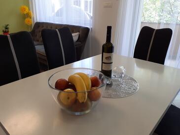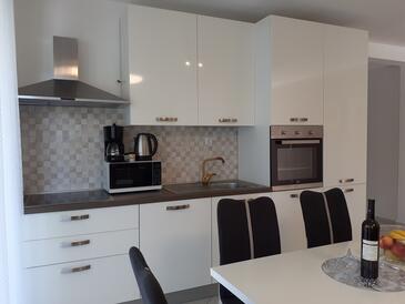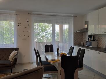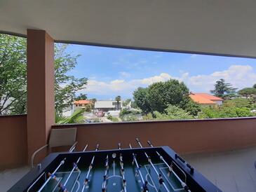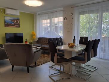 Ferienwohnung bietet Platz für 5 Gäste. Die Betten sind in Schlafzimmern, die es 3 gibt, innerhalb einer Gesamtfläche von 71m2, angeordnet. Die Gäste haben eine eigene Terrasse zur Verfügung, auf der sie in warmen Sommernächten genießen können.