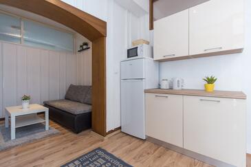 Ferienwohnung bietet Platz für 4 Gäste. Die Betten sind in Schlafzimmern, die es 2 gibt, innerhalb einer Gesamtfläche von 60m2, angeordnet. Die Gäste haben eine eigene Terrasse zur Verfügung, auf der sie in warmen Sommernächten genießen können. Es ist erlaubt, Speisen auf dem Gemeinschafts-Grill vorzubereiten. Während ihres Aufenthalts können Gäste das gemeinsam zur Nutzung stehende Schwimmbad benutzen. In der Unterkunftseinheit besteht die Möglichkeit des Mitbringens von Haustieren gegen Aufpreis.