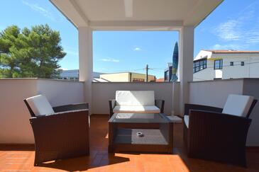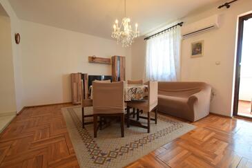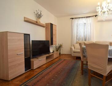 Ferienwohnung bietet Platz für 5 Gäste. Die Betten sind in Schlafzimmern, die es 2 gibt, und in Wohnzimmer, innerhalb einer Gesamtfläche von 60m2, angeordnet. Die Gäste haben eine eigene Terrasse zur Verfügung, auf der sie in warmen Sommernächten genießen können.