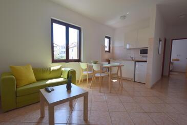 Ferienwohnung bietet Platz für 5 Gäste. Die Betten sind in Schlafzimmern, die es 2 gibt, und in Esszimmer, innerhalb einer Gesamtfläche von 40m2, angeordnet. Die Gäste haben eine eigene Terrasse zur Verfügung, auf der sie in warmen Sommernächten genießen können.