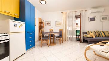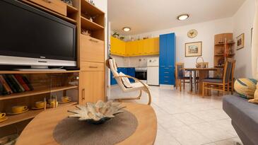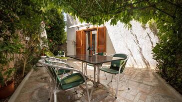 Ferienwohnung bietet Platz für 4 Gäste. Die Betten sind in Schlafzimmern, die es 2 gibt, innerhalb einer Gesamtfläche von 52m2, angeordnet. Die Gäste haben eine eigene Terrasse zur Verfügung, auf der sie in warmen Sommernächten genießen können.