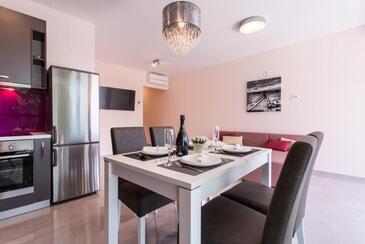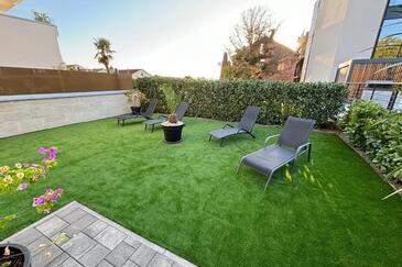 Ferienwohnung bietet Platz für 4 Gäste. Die Betten sind in Schlafzimmern, die es 2 gibt, innerhalb einer Gesamtfläche von 76m2, angeordnet. Die Gäste haben eine eigene Terrasse zur Verfügung, auf der sie in warmen Sommernächten genießen können. Das Apartment bietet Meerblick. Räume der gebuchten Unterkunftseinheit werden nicht in eine Ganze verbunden.