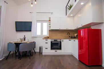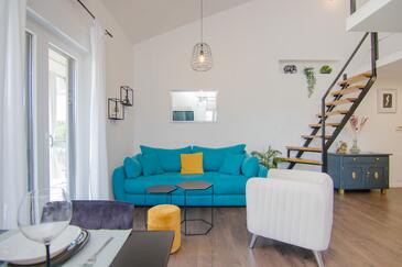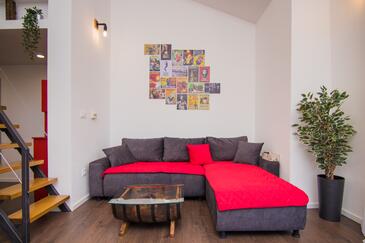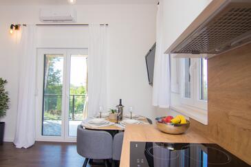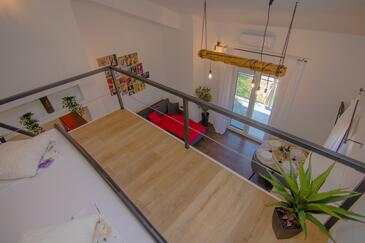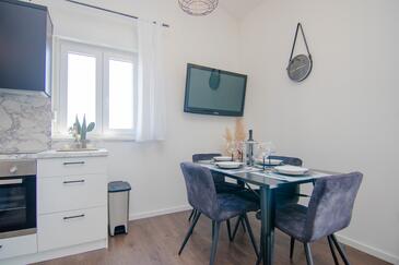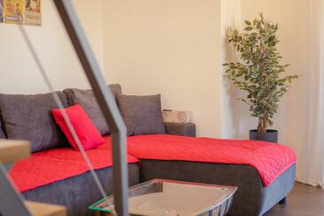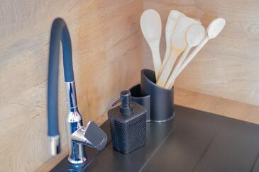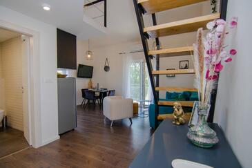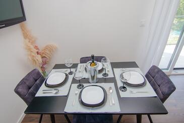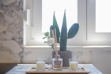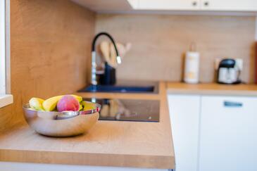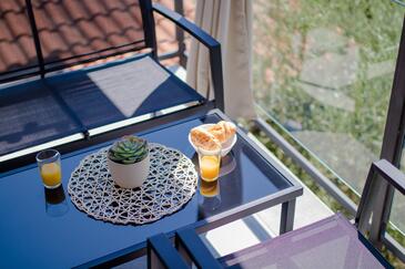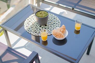 Ferienwohnung bietet Platz für 4 Gäste. Die Betten sind in Schlafzimmern, die es 1 gibt, und in Wohnzimmer, innerhalb einer Gesamtfläche von 43m2, angeordnet. Die Gäste haben eine eigene Terrasse zur Verfügung, auf der sie in warmen Sommernächten genießen können. Es ist erlaubt, Speisen auf dem Gemeinschafts-Grill vorzubereiten.