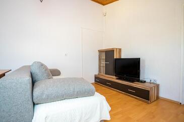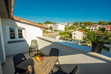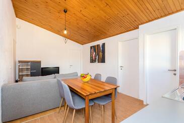 Ferienwohnung bietet Platz für 5 Gäste. Die Betten sind in Schlafzimmern, die es 2 gibt, und in Wohnzimmer, innerhalb einer Gesamtfläche von 47m2, angeordnet. Die Gäste haben eine eigene Terrasse zur Verfügung, auf der sie in warmen Sommernächten genießen können. Das Apartment bietet Meerblick. Es ist erlaubt, Speisen auf dem Gemeinschafts-Grill vorzubereiten. In der Unterkunftseinheit besteht die Möglichkeit des Mitbringens von Haustieren gegen Aufpreis.