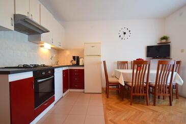 Ferienwohnung bietet Platz für 6 Gäste. Die Betten sind in Schlafzimmern, die es 3 gibt, innerhalb einer Gesamtfläche von 57m2, angeordnet. Die Gäste haben eine eigene Terrasse zur Verfügung, auf der sie in warmen Sommernächten genießen können. Es ist erlaubt, Speisen auf dem Gemeinschafts-Grill vorzubereiten. In der Unterkunftseinheit besteht die Möglichkeit des Mitbringens von Haustieren gegen Aufpreis.