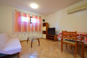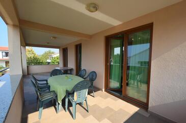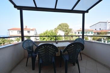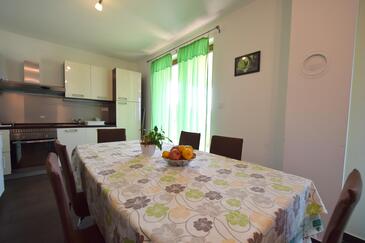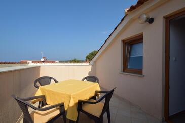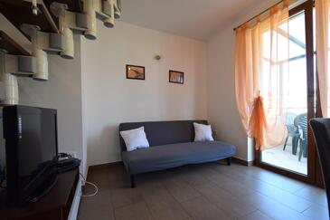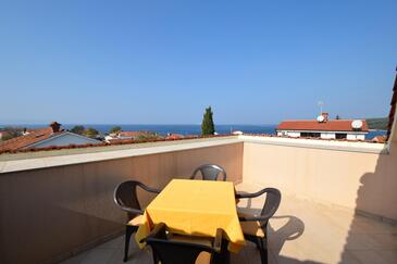 Ferienwohnung bietet Platz für 6 Gäste. Die Betten sind in Schlafzimmern, die es 3 gibt, innerhalb einer Gesamtfläche von 75m2, angeordnet. Die Gäste haben eine eigene Terrasse zur Verfügung, auf der sie in warmen Sommernächten genießen können. Das Apartment bietet Meerblick. Es ist erlaubt, Speisen auf dem Gemeinschafts-Grill vorzubereiten.