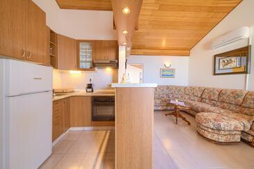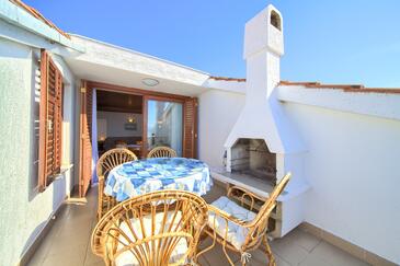 Ferienwohnung bietet Platz für 4 Gäste. Die Betten sind in Schlafzimmern, die es 2 gibt, innerhalb einer Gesamtfläche von 44m2, angeordnet. Die Gäste haben eine eigene Terrasse zur Verfügung, auf der sie in warmen Sommernächten genießen können. Das Apartment bietet Meerblick. Für vollen Genuss und Entspannung gibt es einen privaten Grill für Gäste dieser Unterkunft. In der gebuchten Unterkunftseinheit zahlt man am Ort ein Depositum ( der Preis ist an der Internetseite angeführt ).