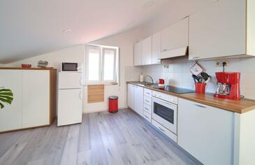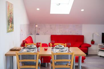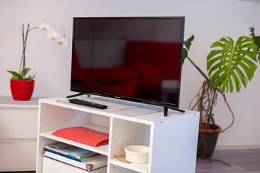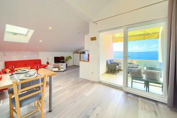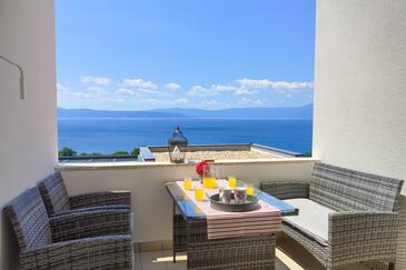 Ferienwohnung bietet Platz für 5 Gäste. Die Betten sind in Schlafzimmern, die es 2 gibt, und in Wohnzimmer, innerhalb einer Gesamtfläche von 58m2, angeordnet. Die Gäste haben eine eigene Terrasse zur Verfügung, auf der sie in warmen Sommernächten genießen können. Das Apartment bietet Meerblick. Es ist erlaubt, Speisen auf dem Gemeinschafts-Grill vorzubereiten. In der Unterkunftseinheit besteht die Möglichkeit des Mitbringens von Haustieren gegen Aufpreis.