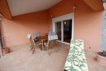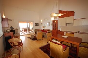 Ferienwohnung bietet Platz für 5 Gäste. Die Betten sind in Schlafzimmern, die es 2 gibt, und in Wohnzimmer, innerhalb einer Gesamtfläche von 106m2, angeordnet. Die Gäste haben eine eigene Terrasse zur Verfügung, auf der sie in warmen Sommernächten genießen können. Das Apartment bietet Meerblick. Für vollen Genuss und Entspannung gibt es einen privaten Grill für Gäste dieser Unterkunft.