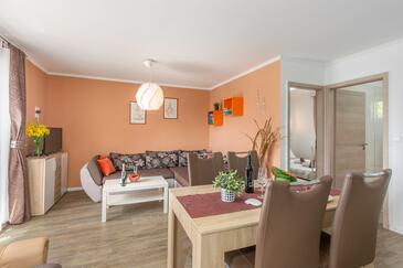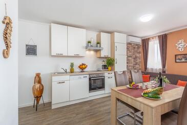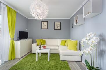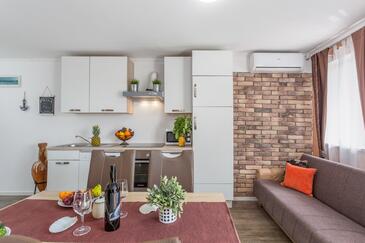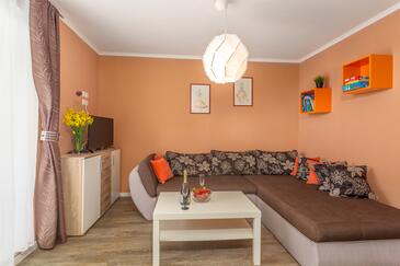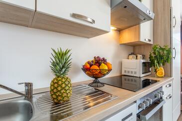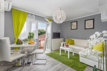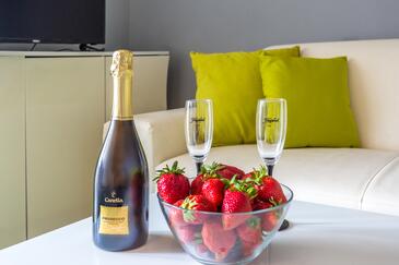 Ferienwohnung bietet Platz für 6 Gäste. Die Betten sind in Schlafzimmern, die es 1 gibt, und in Wohnzimmer, innerhalb einer Gesamtfläche von 45m2, angeordnet. Die Gäste haben einen eigenen Balkon zur Verfügung, auf der sie in warmen Sommernächten genießen können. Das Apartment bietet Meerblick. Für vollen Genuss und Entspannung gibt es einen privaten Grill für Gäste dieser Unterkunft. Während ihres Aufenthalts können Gäste das gemeinsam zur Nutzung stehende Schwimmbad benutzen.