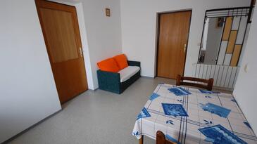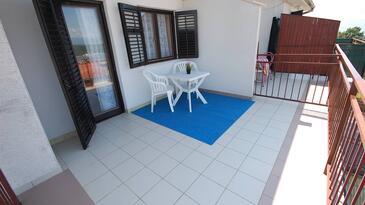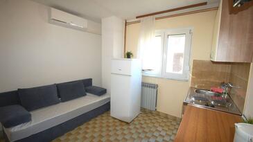 Ferienwohnung bietet Platz für 4 Gäste. Die Betten sind in Schlafzimmern, die es 2 gibt, innerhalb einer Gesamtfläche von 40m2, angeordnet. Die Gäste haben eine eigene Terrasse zur Verfügung, auf der sie in warmen Sommernächten genießen können. Das Apartment bietet Meerblick. Es ist erlaubt, Speisen auf dem Gemeinschafts-Grill vorzubereiten.