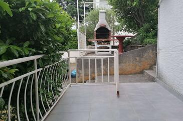 Ferienwohnung bietet Platz für 5 Gäste. Die Betten sind in Schlafzimmern, die es 2 gibt, und in Wohnzimmer, innerhalb einer Gesamtfläche von 42m2, angeordnet. Die Gäste haben eine eigene Terrasse zur Verfügung, auf der sie in warmen Sommernächten genießen können. Es ist erlaubt, Speisen auf dem Gemeinschafts-Grill vorzubereiten.