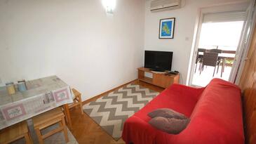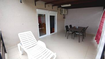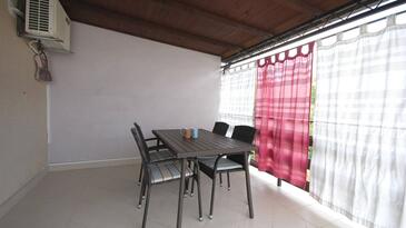 Ferienwohnung bietet Platz für 4 Gäste. Die Betten sind in Schlafzimmern, die es 2 gibt, innerhalb einer Gesamtfläche von 53m2, angeordnet. Die Gäste haben eine eigene Terrasse zur Verfügung, auf der sie in warmen Sommernächten genießen können. Es ist erlaubt, Speisen auf dem Gemeinschafts-Grill vorzubereiten.