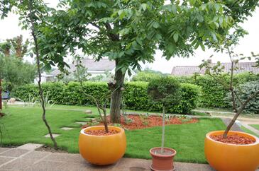Ferienwohnung bietet Platz für 4 Gäste. Die Betten sind in Schlafzimmern, die es 2 gibt, innerhalb einer Gesamtfläche von 42m2, angeordnet. Die Gäste haben eine eigene Terrasse zur Verfügung, auf der sie in warmen Sommernächten genießen können. Das Apartment bietet Meerblick. Es ist erlaubt, Speisen auf dem Gemeinschafts-Grill vorzubereiten.