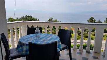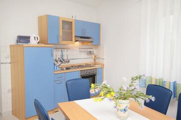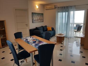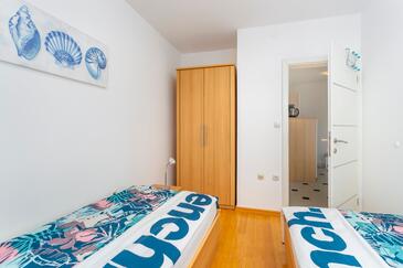 Ferienwohnung bietet Platz für 4 Gäste. Die Betten sind in Schlafzimmern, die es 2 gibt, innerhalb einer Gesamtfläche von 45m2, angeordnet. Die Gäste haben eine eigene Terrasse zur Verfügung, auf der sie in warmen Sommernächten genießen können. Das Apartment bietet Meerblick. Es ist erlaubt, Speisen auf dem Gemeinschafts-Grill vorzubereiten.