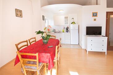 Ferienwohnung bietet Platz für 5 Gäste. Die Betten sind in Schlafzimmern, die es 2 gibt, und in Esszimmer, innerhalb einer Gesamtfläche von 59m2, angeordnet. Die Gäste haben eine eigene Terrasse zur Verfügung, auf der sie in warmen Sommernächten genießen können. Das Apartment bietet Meerblick. Es ist erlaubt, Speisen auf dem Gemeinschafts-Grill vorzubereiten.