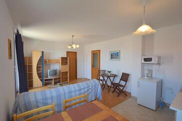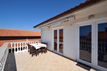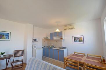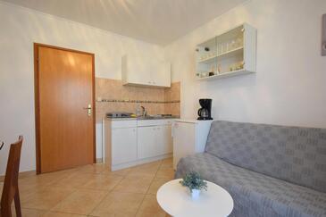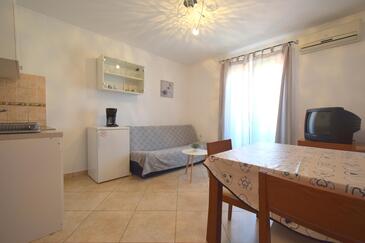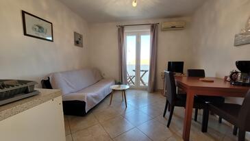 Ferienwohnung bietet Platz für 4 Gäste. Die Betten sind in Schlafzimmern, die es 2 gibt, innerhalb einer Gesamtfläche von 56m2, angeordnet. Die Gäste haben eine eigene Terrasse zur Verfügung, auf der sie in warmen Sommernächten genießen können. Das Apartment bietet Meerblick. Es ist erlaubt, Speisen auf dem Gemeinschafts-Grill vorzubereiten. In der Unterkunftseinheit besteht die Möglichkeit des Mitbringens von Haustieren gegen Aufpreis.