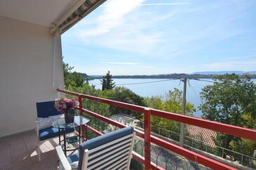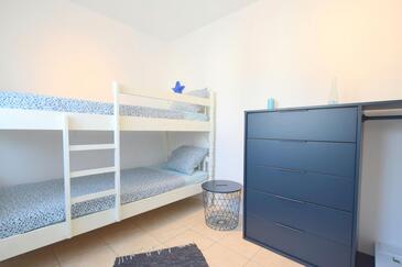Ferienwohnung bietet Platz für 4 Gäste. Die Betten sind in Schlafzimmern, die es 2 gibt, innerhalb einer Gesamtfläche von 42m2, angeordnet. Die Gäste haben eine eigene Terrasse zur Verfügung, auf der sie in warmen Sommernächten genießen können. Das Apartment bietet Meerblick. Es ist erlaubt, Speisen auf dem Gemeinschafts-Grill vorzubereiten.