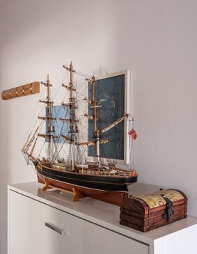 Ferienwohnung bietet Platz für 6 Gäste. Die Betten sind in Schlafzimmern, die es 2 gibt, und in Wohnzimmer, innerhalb einer Gesamtfläche von 85m2, angeordnet. Die Gäste haben eine eigene Terrasse zur Verfügung, auf der sie in warmen Sommernächten genießen können. Das Apartment bietet Meerblick. In der gebuchten Unterkunftseinheit zahlt man am Ort ein Depositum ( der Preis ist an der Internetseite angeführt ).