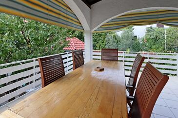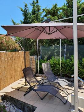 Ferienwohnung bietet Platz für 10 Gäste. Die Betten sind in Schlafzimmern, die es 5 gibt, innerhalb einer Gesamtfläche von 114m2, angeordnet. Die Gäste haben eine eigene Terrasse zur Verfügung, auf der sie in warmen Sommernächten genießen können. Das Apartment bietet Meerblick. Es ist erlaubt, Speisen auf dem Gemeinschafts-Grill vorzubereiten.