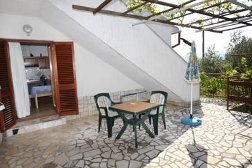 Ferienwohnung bietet Platz für 4 Gäste. Die Betten sind in Schlafzimmern, die es 1 gibt, und in Wohnzimmer, innerhalb einer Gesamtfläche von 36m2, angeordnet. Die Gäste haben eine eigene Terrasse zur Verfügung, auf der sie in warmen Sommernächten genießen können. Das Apartment bietet Meerblick. Es ist erlaubt, Speisen auf dem Gemeinschafts-Grill vorzubereiten.