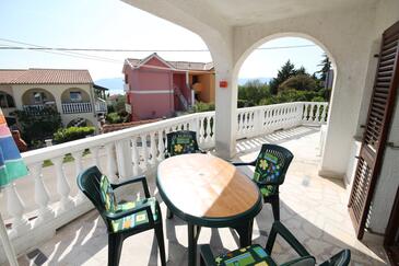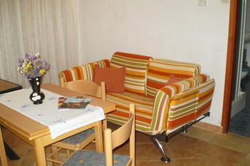 Ferienwohnung bietet Platz für 4 Gäste. Die Betten sind in Schlafzimmern, die es 1 gibt, und in Wohnzimmer, innerhalb einer Gesamtfläche von 36m2, angeordnet. Die Gäste haben eine eigene Terrasse zur Verfügung, auf der sie in warmen Sommernächten genießen können. Das Apartment bietet Meerblick. Es ist erlaubt, Speisen auf dem Gemeinschafts-Grill vorzubereiten.